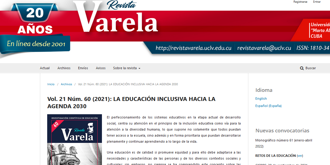 La Revista Varela es una publicación electrónica de cobertura internacional, arbitrada y editada en idioma español e inglés, que difunde aportes en múltiples ámbitos de la teoría, la práctica y la investigación en educación, los cuales están dirigidos al personal docente de las instituciones educativas, científicos y académicos del área educacional, estudiantes en formación inicial docente, actores sociales y al público especializado en temas generales de carácter educativo. Precisamente con el nombre de la revista se rinde homenaje a Félix Varela Morales (1788-1853), quien fuera una de las figuras excepcionales del pensamiento educativo y pedagógico cubano, cuyas ideas rebasan la dimensión temporal para alcanzar plena vigencia en la época actual.